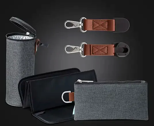 Além de tudo, a Urban acompanha 01 trocador, 01 porta mamadeira térmico com clipe para fixação no carrinho, 01 nécessaire pequena, 01 alça para uso universal e 01 alça com clipe para fixação no carrinho ABC Design.