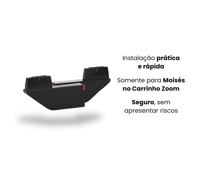 O adaptador torna possível acoplar o segundo moisés à estrutura do carrinho Zoom com apenas um clique. (Produto não apresenta risco à saúde e à integridade física do usuário. Quando bem utilizado, é seguro e não apresenta riscos).