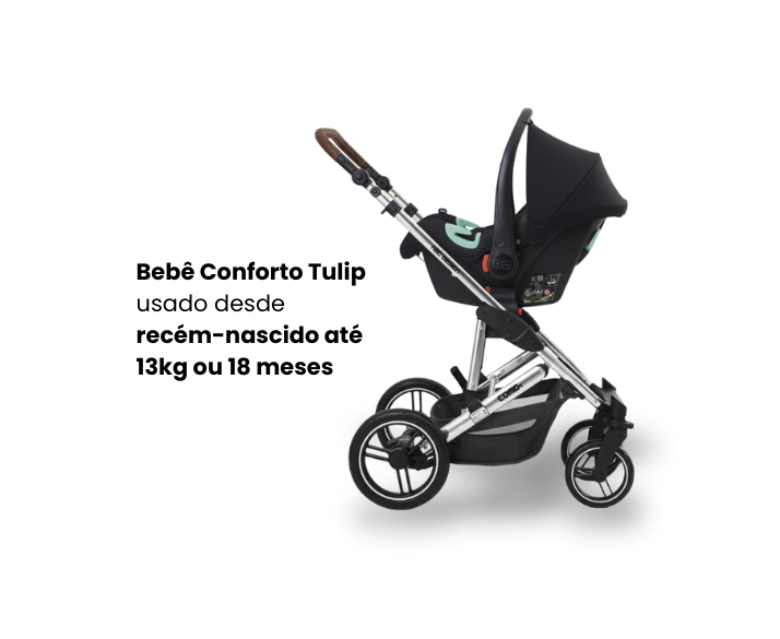 O Tulip pode ser utilizado desde recém-nascido até 13 kg ou 18 meses. Possui capota com proteção solar 50+ e pode ser acoplado à estrutura de forma prática com auxílio do Adaptador Bebê Conforto Tulip. Tem aprovação do INMETRO e respeita os padrões de segurança infantil mundial.