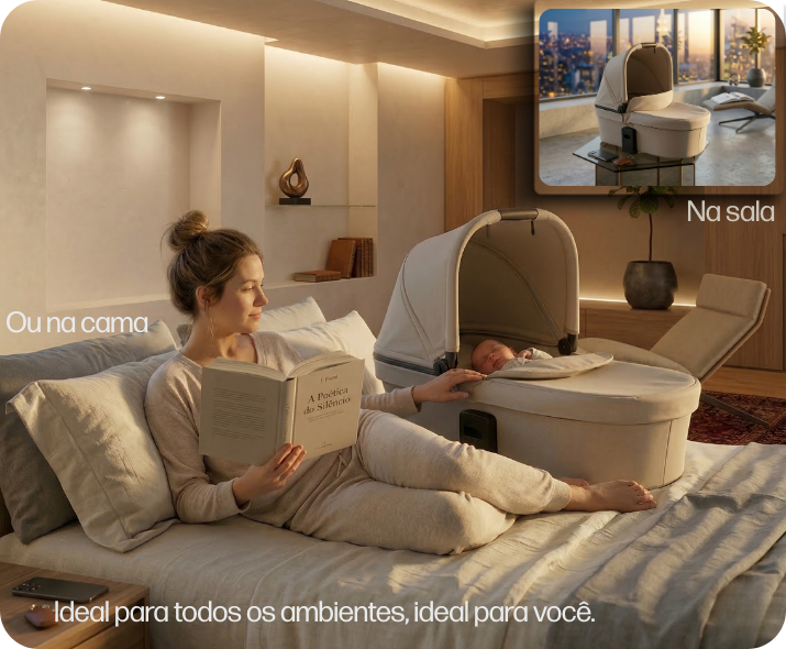O moisés do Como 4 é estruturado e pode ser colocado em qualquer superfície plana. Para os pais, isso significa ter um berço portátil que pode ficar ao lado da cama à noite ou na sala durante o dia, sem a necessidade de levar o chassi do carrinho para dentro de todos os cômodos. O moisés do Como 4 vai além, ele conta com a função antissufocante e antirrefluxo, pois a segurança do seu bebê é a prioridade.