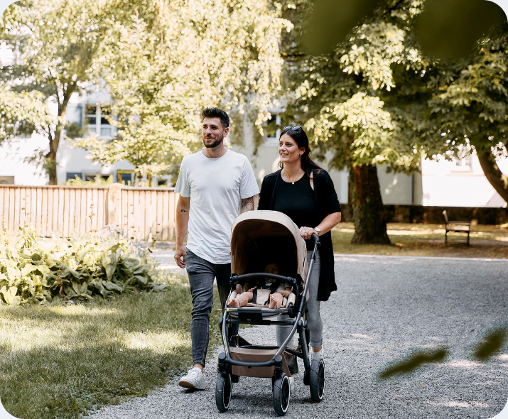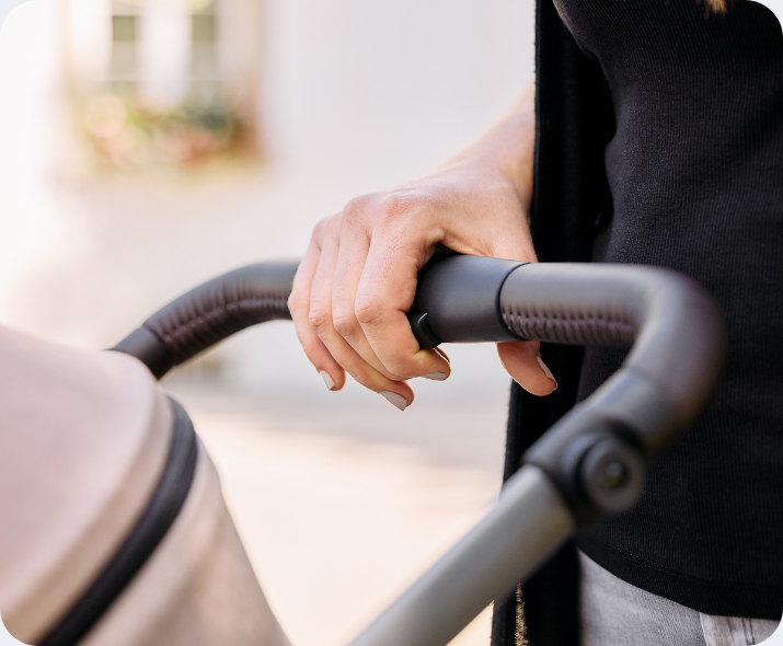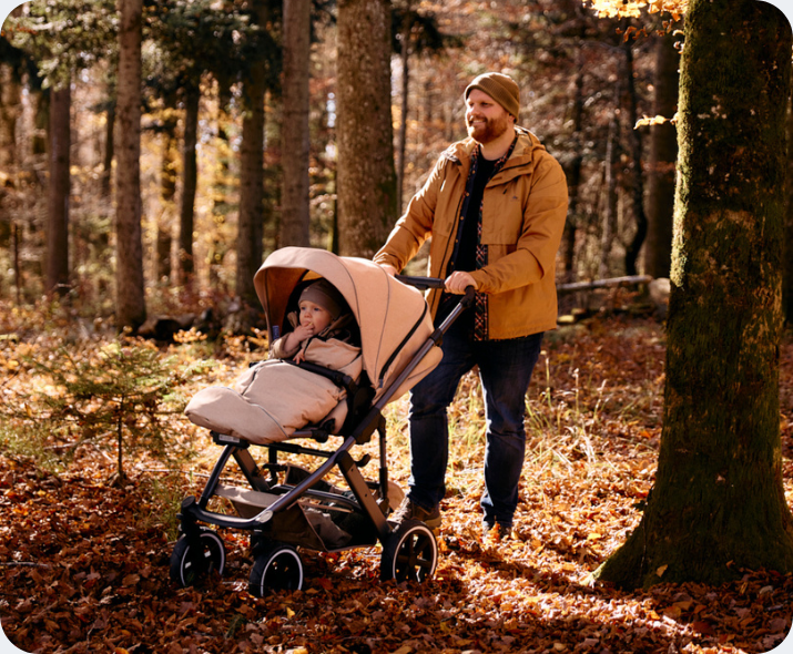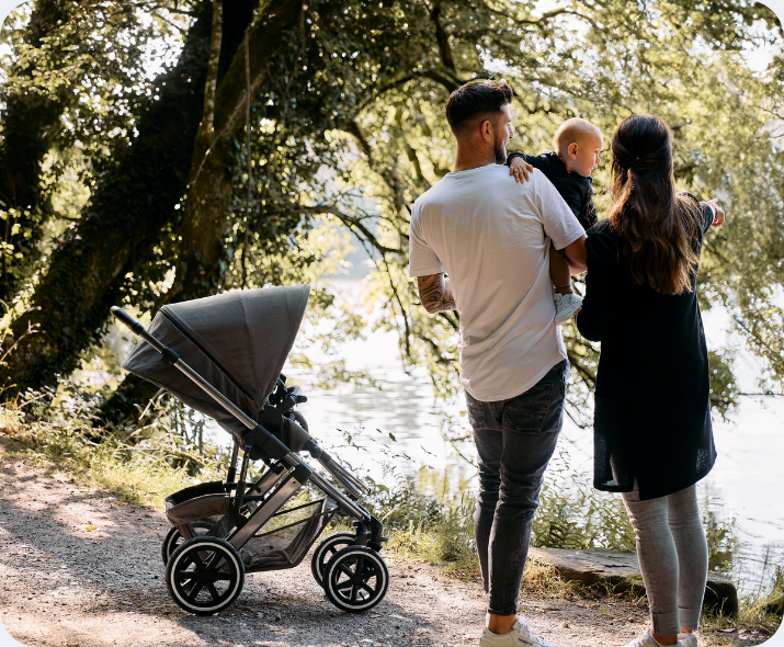 A engenharia alemã foca na dirigibilidade. Graças aos rolamentos de alta qualidade e às rodas dianteiras giratórias em 360°, você consegue guiar o carrinho com apenas uma mão, facilitando a vida dos pais que estão sempre carregando bolsas, chaves ou um café.