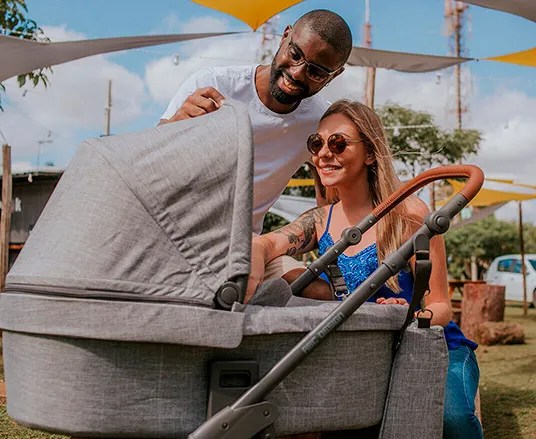 O tecido contém tecnologia antiaquecimento, resistência à água e alta durabilidade, além de ser respirável, ter proteção solar 50+ e toque macio e gentil com a pele do bebê.