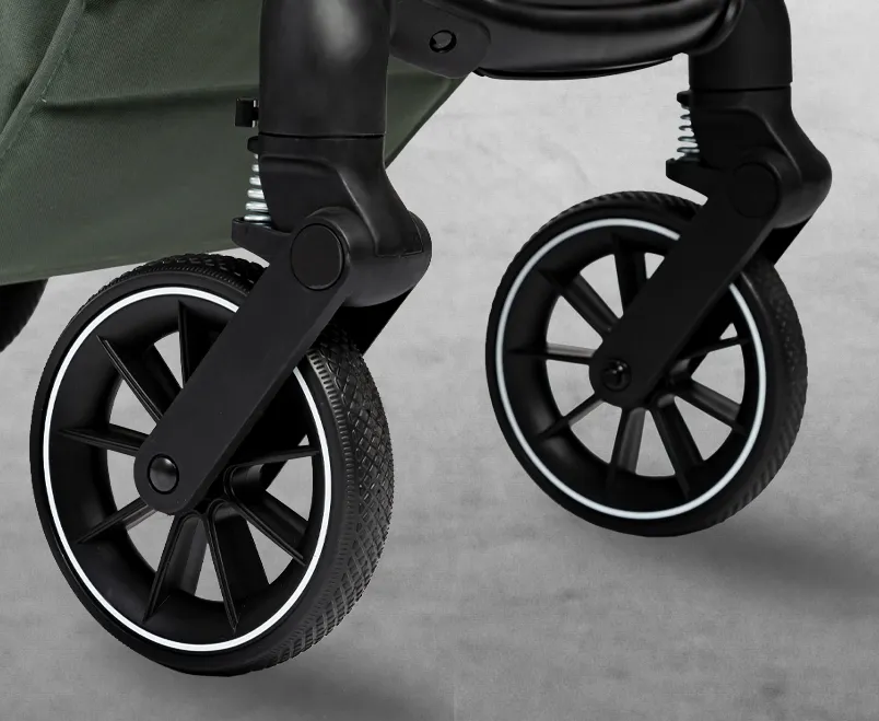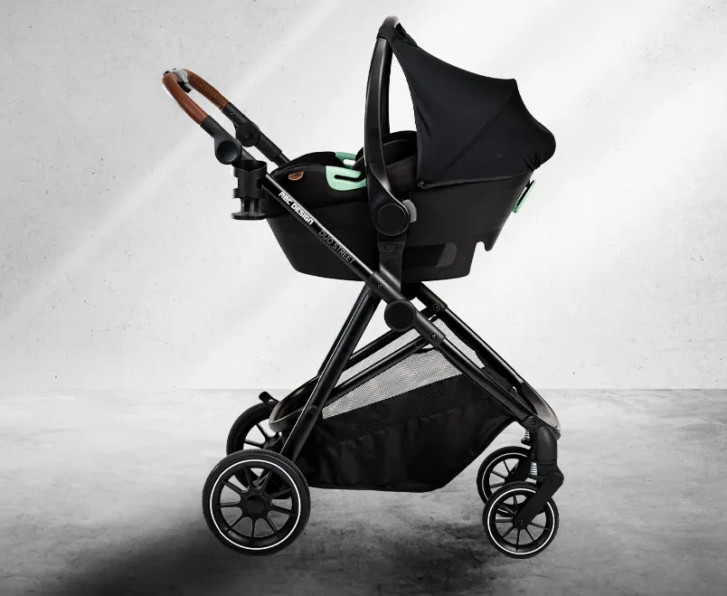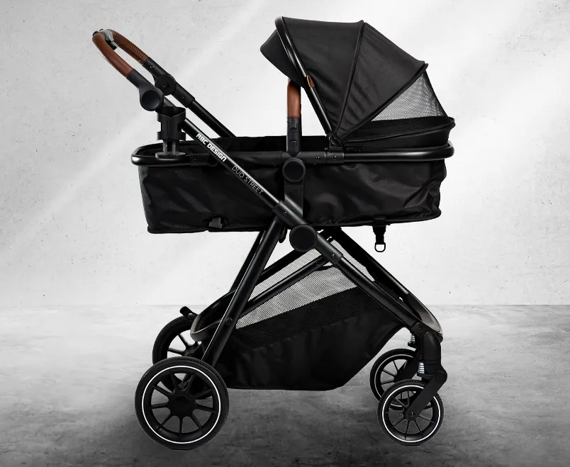 O Duo Street tem a estrutura 100% alumínio e amortecedores nas rodas traseiras e dianteiras, que proporcionam um passeio mais estável e confortável para o bebê. Além disso, conta com um cesto de objetos espaçoso que suporta até 5 kg.