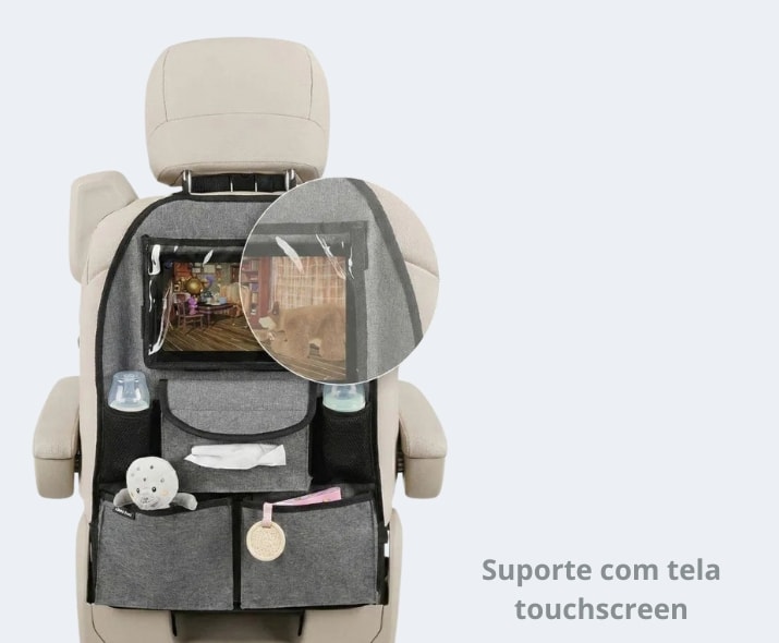 Mantenha tudo o que a criança precisa ao alcance das mãos! A Bolsa Organizadora para Carro foi pensada para facilitar o dia a dia, evitando manchas, arranhões e a desorganização durante os passeios. Conta com bolsos práticos em malha, ideais para guardar brinquedos, lanches, garrafinhas e acessórios, além de um suporte transparente para tablet com tela touchscreen, perfeito para entreter a criança durante viagens. Fácil de instalar, durável e funcional, é a solução ideal para quem busca organização e praticidade no carro, sem abrir mão do conforto e da segurança.