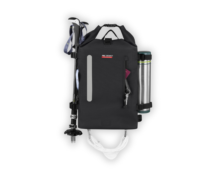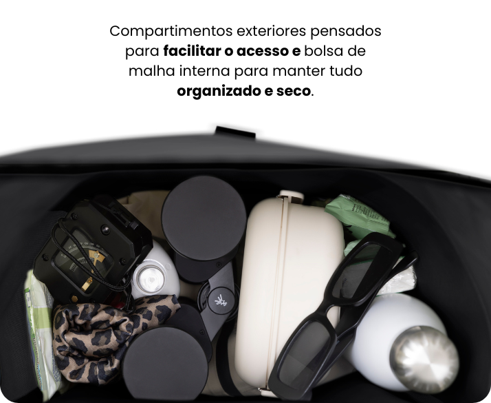 Capacidade de 22 litros e sistema roll-top flexível, com bolsos frontais externos com zíperes à prova d’água para objetos essenciais e compartimento oculto para laptop de até 16" com forro fleece, garantindo proteção em qualquer situação.