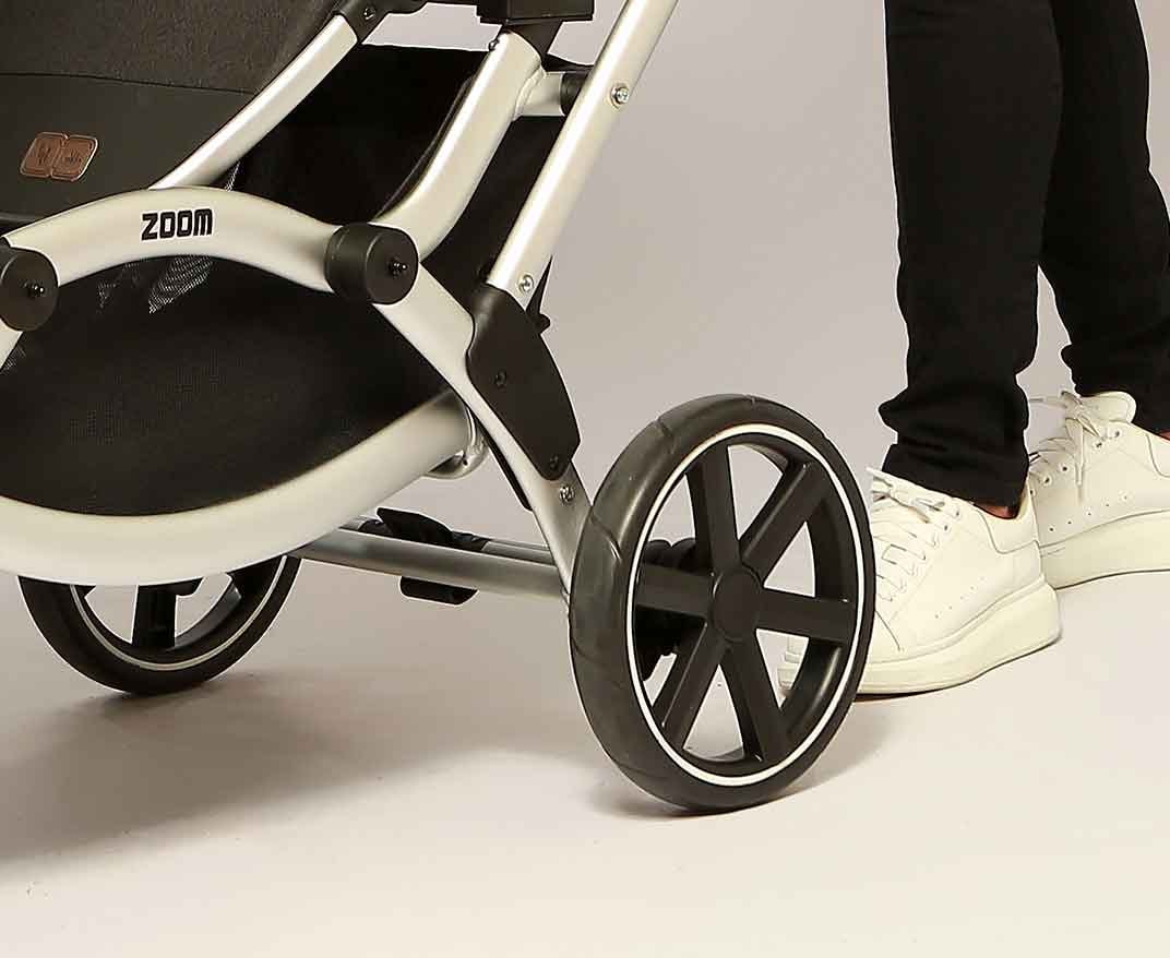Roda Traseira para o modelo de carrinho Zoom feita em polietileno de alta resistência, garantindo a segurança e conforto dos passeios em família.ATENÇÃO: Compatível somente com coleções fabricadas de 2017 em diante. Rodas unitárias, vendidas separadamente.